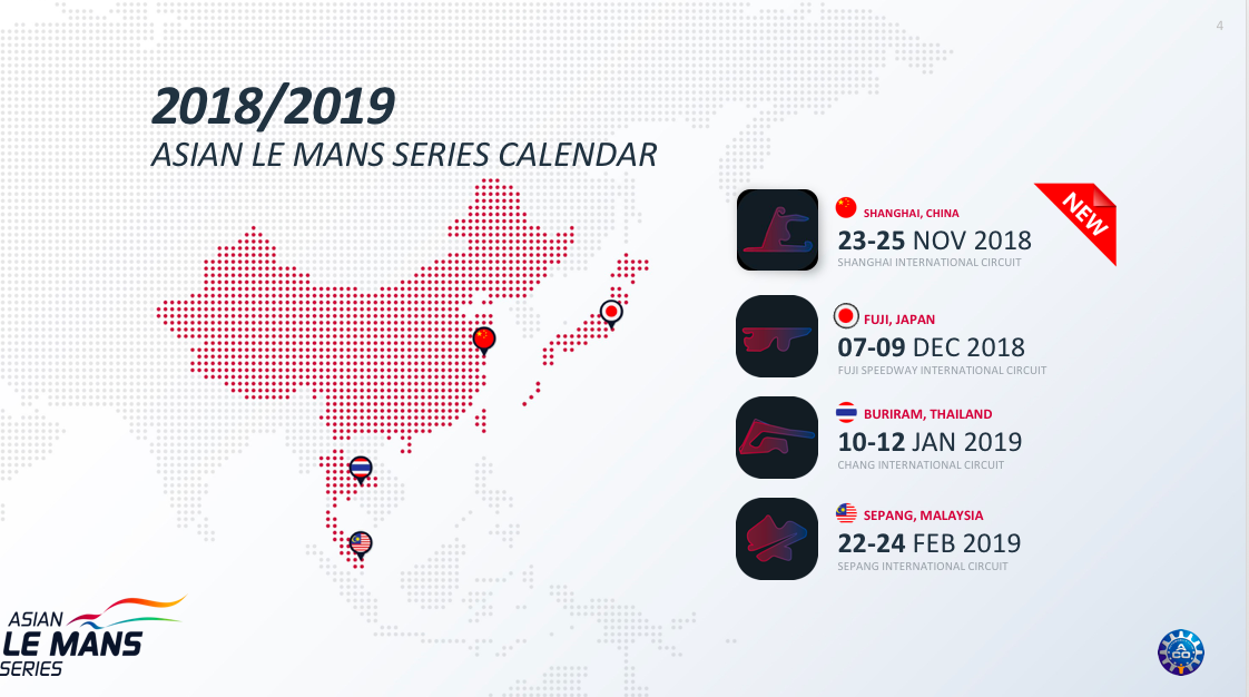 2018/19 Asian Le Mans Series Calendar details: